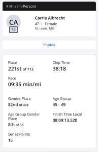 Here are my stats for the 2024 Hot Chocolate St. Louis race.