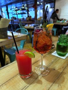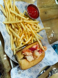 One of my FAVORITE places to go eat after a race (and shower!) is Peacemaker Lobster and Crab. They have the BEST lobster rolls (and hush puppies!). We also got drinks!! Brian got a wine slushy and I got some sort of holiday drink with champagne.