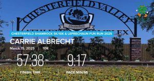 I ran the Chesterfield Shamrock 10K back on March 15th and it really was a wonky race too. First, my coach wanted me to run it as part of my ‘training’ for my half marathon, so she didn’t want me to go ALL out for it. I had signed up, thinking I was just going to race it all out. Ha, ha! But, she wanted me to start at a specific pace and progressively get faster by a few seconds each mile. She’s a firm believer in the fact that you train for your A race and any other race during that training session is not your A race!