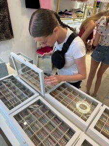 After our run, we showered, cleaned up and ate breakfast at the hotel. After that, we went on the subway to SoHo to check out a cute little boutique store called Cut and Cropped. Autumn is into Italian Charm Bracelets (can you believe they’re back in style?!) and they are NYC’s largest Italian charm bar and they also have cute clothing, jewelry and accessories. The outside of the store was so cute, I had to get a photo!