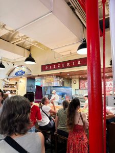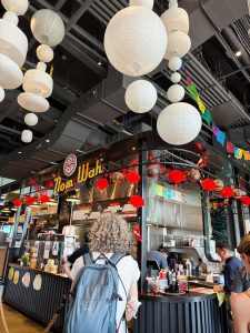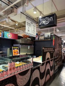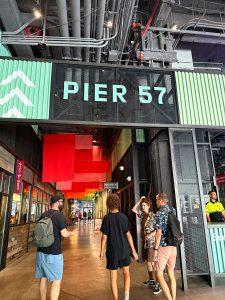 After we finished up at Chelsea Market, our foodie guide took us across the street to ANOTHER quieter food hall called Market 57 inside Pier 57. The tables inside had a really nice view of the artificial island and public park in Hudson River Park. This “tree island” is named Little Island, which is near the intersection of West Street and West 13th Street. Little Island is known for its unique design, featuring 132 “pot-shaped” structures (called “tulips”) that support the park’s landscape, including trees, flowers, and walking paths.