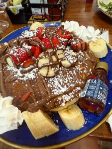 For dinner, we had nothing planned… so I let Brian pick for once! Ha, ha! He picked a place close to our hotel called Carnegie Diner. Brian and I both got breakfast and it was phenomenal, the teens both got dinner (a pasta and fish and chips). I got Nutella banana pancakes (breakfast for dinner!). SO GOOD!